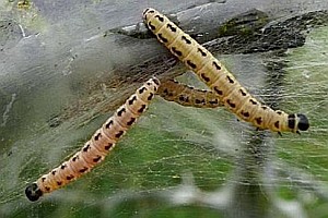 Die Raupe lebt in Gespinsten an Prunus padus. Angaben zu anderen Prunus-Arten sind sehr fraglich und wahrscheinlich durchweg falsch.