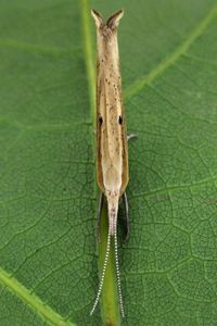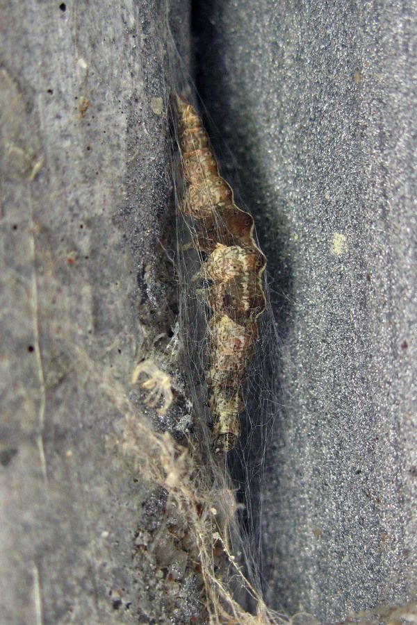 Die Raupe ruht tagsüber oft an Zweigen, wo sie hervorragend getarnt ist.