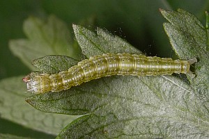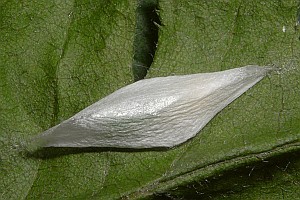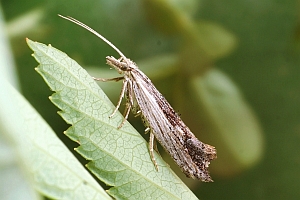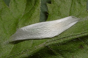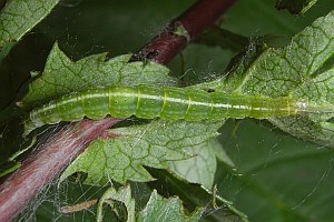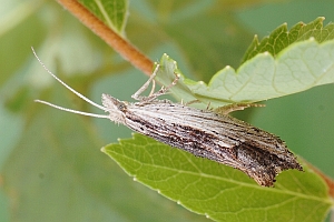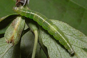 Die Raupen leben also - wie die von Ypsolopha asperella - an verschiedenen Rosengewächsen; die oben gezeigten Raupenfunde aus Leipzig von Heidrun Melzer betreffen Weißdorn, Zwergmispel und Apfelbaum. Burmann (1985) schreibt zur Art: "Die Raupen habe ich bei uns bisher meist an Amelanchier ovalis Med. gefunden. Nur ganz einzeln an Pirus malus L. Sie sind, wie alle Ypsolopha-Raupen leicht in den Schirm zu klopfen." Agassiz (1996: 92) hatte formuliert: "Ovum. Laid on a twig of hawthorn (Crataegus spp.), apple (Malus spp.), or occasionally Cotoneaster spp." Unklar ist, ob dem bei Curtis (1823-1840) genannten Sorbus torminalis ein Freiland-Raupenfund zu Grunde liegt; bisher kenne ich auch keine Primärangabe zum Birnbaum.