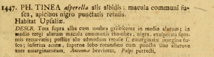 - Lectotypus-Festlegung: Robinson, G. S. & E. Schmidt Nielsen (1983): The Microlepidoptera described by Linnaeus and Clerck. — Systematic Entomology 8: 191-242.