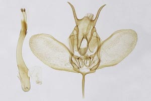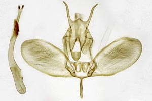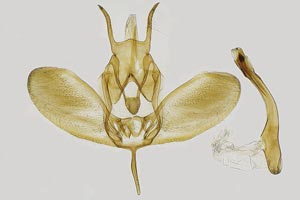 1: ♂, Schweiz, Neuchâtel, Le Landeron, 500 m, 30. April 2008, Raupe an Lonicera xylosteum, e.l. 26. Mai 2008 (leg., cult., det. und fot. Rudolf Bryner)Forum