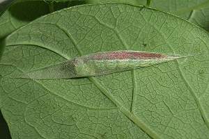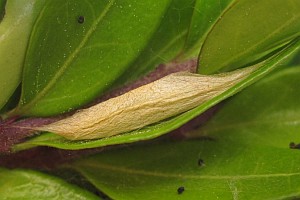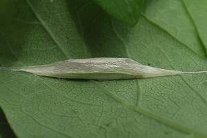 5: Verpuppungsgespinst, Deutschland, Niedersachsen, Landkreis Schaumburg, Rodenberg, Garten, 70 m, leg. Raupen 2. Juni 2013 von Lonicera pileata (cult., det. & Foto am 8. Juni 2013: Tina Schulz)Forum