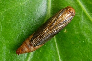 11: Deutschland, Niedersachsen, Landkreis Schaumburg, Rodenberg, Garten, 70 m, leg. Kokon mit Puppe von Hauswand (Lonicera pileata nahebei) 3. Juni 2022, Falterschlupf 18. Juni 2022 (cult., det. & fot.: Tina Schulz)