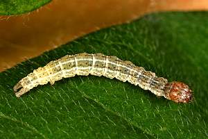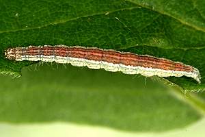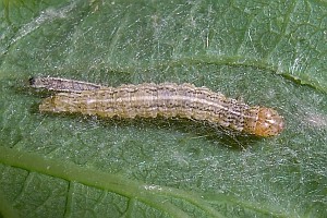 8-9: Deutschland, Niedersachsen, Landkreis Schaumburg, Rodenberg, Garten, 70 m, leg. Raupen 2. Juni 2013 von Lonicera pileata, e.l. 22. und 23. Juni 2013 (cult., det. & Fotos: Tina Schulz)Forum