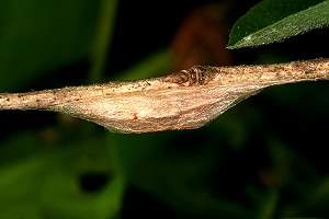 2: Verpuppungsgespinst, Daten s. Raupenbild 3 (Studiofoto am 15. Mai 2007: Heidrun Melzer), cult. & det. Heidrun Melzer