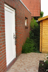 1: Larvalhabitat mit Lonicera pileata (Kokonfund 2022 an der Tür): Deutschland, Niedersachsen, Landkreis Schaumburg, Rodenberg, Garten, 70 m, 3. Juni 2022 (Foto: Tina Schulz)