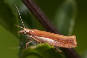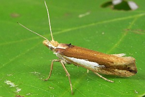 Eine kleinere und sehr veränderlich gefärbte Art ohne den für die Ypsolopha-Arten charakteristisch sichelförmig gestalteten Flügelapex. Typischerweise am Vorderrand der Vorderflügel mit weißlicher Strieme, welche zum Apex hin in die braune Grundfärbung übergeht und nach hinten oft scharf weiß begrenzt ist. Diese Strieme kann aber auch fehlen oder durch eine zusätzliche schwarze Mittellinie von der Flügelbasis bis zum Apex kräftig hervorgehoben werden. (Text: Rudolf Bryner)
