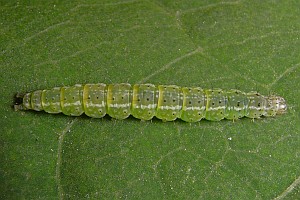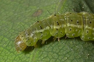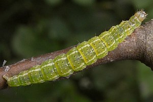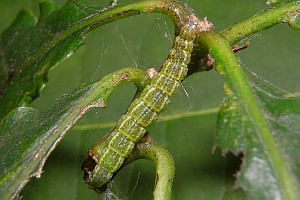 Die Raupe lebt im Normalfall an Eichen, wobei meist nichts über die Eichen-Art ausgesagt wird. In Deutschland wurden Raupen an Stiel-Eichen gefunden. Kulfan et al. (2018) melden aus der Slowakei Raupenfunde an Quercus cerris. Zumindest vereinzelt werden Raupen aber auch an anderen Laubbäumen wie Hänge-Birke und Zitter-Pappel gefunden; letztere beiden wurden durch Heidrun Melzer [Forumsbeitrag] belegt, wobei es durchaus sein könnte, dass die Eiablage hier ursprünglich an Eiche erfolgt war; immerhin fraßen die Raupen definitiv an Populus tremula bzw. Betula pendula.