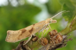 Auf [projects.biodiversity.be] heißt es: "The larva feeds from a slight spinning on the leaves of mainly Quercus, but also on other deciduous trees like Corylus, Carpinus betulus, Betula and also Myrica gale." Da es zur Art aber auch heißt: "A scarce and local species in Belgium" und keinerlei Raupenbilder gezeigt werden, ist es sehr fraglich, ob es hierzu Primärquellen gibt - und falls es sie gibt - ob die Raupen richtig bestimmt wurden. Denn immerhin werden alle diese Gehölze auch bei anderen Ypsolopha-Arten angeführt.