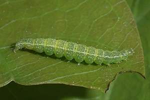 Heidrun Melzers Raupenfund an einer Zitter-Pappel erfolgte nach einem Sturm - in der Zucht wurden die Blätter dieser Pflanze dann aber tatsächlich weiter befressen. Der Raupenfund von Franziska Bauer ist am ehesten mit Weiden in Verbindung zu bringen - sicher ist dies aber nicht. Dass Raupen auch einmal auf anderen Sträuchern und Bäumen herumkrabbeln, hat wenig zu sagen.