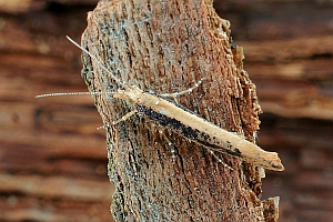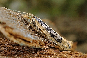 “Ypsolopha ustella überwintert als Falter. Ich habe sie schon öfters unter abstehender Borke toter, noch stehender Baumstämme gefunden, z.T. auch tiefer im zerfallenden Holz versteckt.”