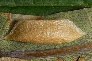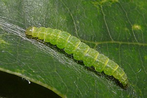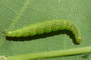 Die Raupen werden ganz überwiegend an Eichen gefunden, so auch die oben gezeigten Raupen, die überwiegend von Stiel-Eichen stammen. Kulfan et al. (2006) melden aus der südwestlichen Slowakei Raupenfunde im Mai an Quercus cerris, Kulfan et al. (2018) auch solche an Quercus pubescens. Nach Agassiz (1996: 96) lebt die Raupe in Großbritannien ausschließlich an verschiedenen, leider nicht näher benannten Eichen-Arten.