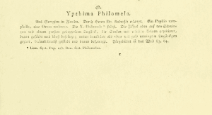 - Ypthima philomela Hübner, 1818 [sekundäres Homonym zu Ypthima philomela (Linnaeus, 1763)]