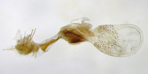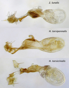 Vergleich der weiblichen Genitalien von Zanclognatha lunalis, Herminia tarsipennalis und Herminia tarsicrinalis: