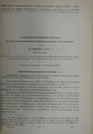 - Erstbeschreibung: Filipjev, N. (1931): Lepidopterologische Notizen IX. Ein neuer Obstblüten-Schädling aus dem Ussuri-Gebiet. — Ежегодник Зоологического музея Академии наук СССР – Annuaire du musée zoologique de l'académie des sciences de l'URSS 31: 341-346.