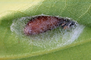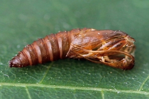 Raupenfunde unter umgeschlagenen Rändern von Eichenblättern wurden auch von den Lepiforums-Mitarbeitern gemeldet - und auch hier konnte ein Raupenfund in einer "Cynips-Galle" dokumentiert werden. Einige Funde beziehen sich auf Quercus robur, meist wird aber die Eichen-Art nicht genannt. Gleiches gilt für die gängige Literatur.