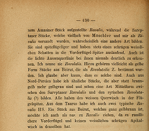- Erstbeschreibung: Staudinger, O. (1878-1879): Lepidopteren-Fauna Kleinasien's. — Horae Societatis entomologicae Rossicae 14: 176-482. St. Pétersbourg (V. Besobrasoff & Comp.).