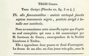 Nicht bekannt ist uns, ob die Tafel, auf die Godart im Text der Erstbeschreibung verweist, existiert. Zu Jahrgang 1 der Zeitschrift der Société linnéenne de Paris gibt es einen separaten Tafelband. Es ist möglich, dass die Tafeln des Jahrgangs 2 nicht publiziert wurden; siehe dazu die anonymen handschriftlichen Notizen (in denen allerdings Tafeln nicht erwähnt werden) auf dem ersten Blatt nach dem Buchdeckel: [Digitalisat auf archive.org].