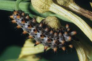 Wie bei den anderen Osterluzeifaltern auch, haben sich die Raupen an die Giftstoffe der in ihrem Gebiet wachsenden Osterluzeiart angepasst. In Europa ist dies meist die Aufrechte Osterluzei (Aristolochia clematitis), auf Samos oft Aristolochia hirta. In der Türkei wachsen jedoch sehr viel mehr Osterluzeiarten, so dass die Raupen dort weniger wählerisch, weil immun gegen die Giftstoffe mehrerer Arten sind.