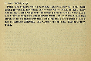 - Erstbeschreibung: Chambers, V. T. (1878): Descriptions of new Tineina from Texas, and others from more northern localities. — Bulletin of the United States Geological and Geographical Survey of the Territories 4: 79-106. Washington (Government Printing Office). [Digitalisat auf biodiversitylibrary.org] Die Seiten 106-107 dieses Digitalisats werden nicht mehr geladen (mehrere Zugriffsversuche am 21./22.08.2024). Der oben wiedergegebene Scan stammt aus einem Backup.