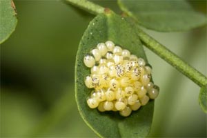 Sicher wichtigste und vielerorts einzige Raupennahrungspflanze ist Securigera varia. Rauch (1981) meldete aus Kroatien Populationen an Coronilla emerus (jetzt Hippocrepis emerus). Hofmann & Tremewan (2020: 898) zeigen ein Habitat von West-Anatolien, in dem ebenfalls Hippocrepis emerus die Nahrungsgrundlage stellt. Sie führen - ohne Kommentar - auch Vicia cracca als Raupennahrung an, was aber sicherlich nur regional oder ausnahmsweise von Bedeutung sein kann. Nach ihren Beobachtugen lassen sich die Raupen in der Zucht mit Hippocrepis comosa füttern, nur ein Teil der Populationen auch mit Onobrychis viciifolia.