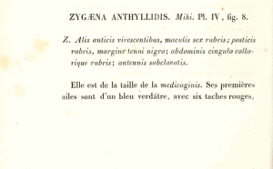- Erstbeschreibung: Boisduval, J. A. (« 1829 ») [1828]: Essai sur une monographie des zygénides, suivi du tableau méthodique, des lépidoptères d'Europe. 1-150, pl. 1-8. Paris (Méquignon-Marvis).