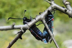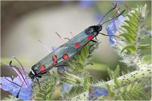 3: Fehlkopula mit Zygaena lonicerae: Spanien, Nordspanien, Provinz Navarra, Iza, 450 m, 11. Juni 2018 (Freilandfoto: Susana Garcia), det. Jürgen BeckerForum