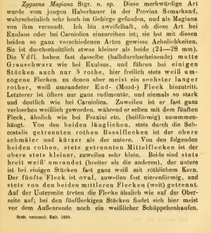 - Zygaena magiana kohistana Grum-Grshimailo, 1893 [Unterart nach Hofmann & Tremewan (2020)]