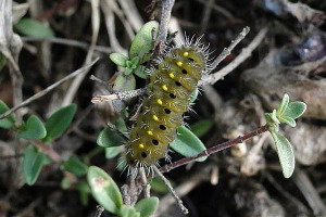 8: Schweiz, Wallis, Mattertal, Stalden, Raupe neben Thymian, 11. Mai 2013, 950 m (det. & fot.: Martin Albrecht)Forum