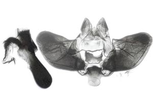 1: Genitalpräparat eines nicht abgebildeten ♂, Österreich, Steiermark, Großraum Weiz, aus alter Sammlung, leg. zwischen 1965 und 1968 (präp. & Foto: Horst Pichler), det. Jürgen BeckerForum