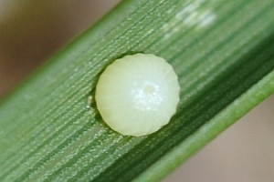 Lafranchis et al. (2015: 98) schreiben zu Südfrankreich, dass die Eiablage meist an Molinia erfolgt, manchmal aber auch an Schilf ("le Roseau commun") oder andere breitblättrige Gräser. Schilf (Phragmites australis) spielt dabei sicher nur eine ganz untergeordnete Rolle - wenn die Meldung nicht doch auf einer Fehlbestimmung von Phalaris arundinacea beruht; da die Pflanze auch schon von Tshikolovets (2011) angeführt wurde und in Südfrankreich an Fundstellen der Art vorkommt, erscheint mir die Angabe doch ausreichend abgesichert.