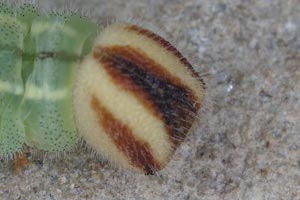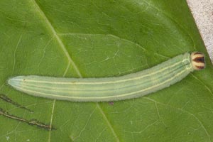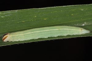 Auf der Artseite von [rusinsects.com] ist zu lesen: "Host plants in Europe (Eckstein, 1913): Eriophorum, grasses (Poa annua, Calamagrostis canescens, Brachypodium, Molinia)." Poa annua ist dabei sicherlich nichts anderes als Notfutter in der Zucht - und Eriophorum wahrscheinlich nicht mehr als eine Vermutung; ich würde nicht ausschließen, dass ausgewachsene Raupen auch einmal daran nagen.