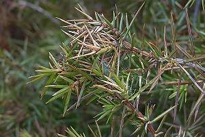 1-2: (1: mit Raupen besetzter Busch), (2: Raupengespinst), Deutschland, Thüringen, Bad Blankenburg, Waldsaum mit Magerrasen, Wacholder (Juniperus communis), 19. April 2007 (Fotos: Heidrun Melzer)Forum