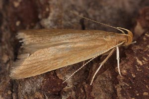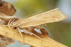 Bei [ukmoths] ist zu lesen: "The larvae overwinter on a number of grasses, especially wood small-reed (Calamagrostis epigejos) and false brome (B. sylvaticum)." Dies scheint auf Freiland-Beobachtungen in Großbritannien zu beruhen.
