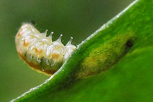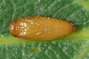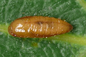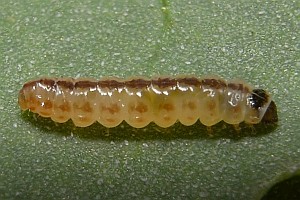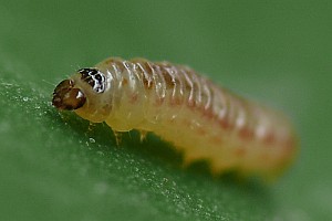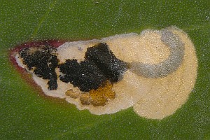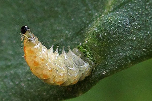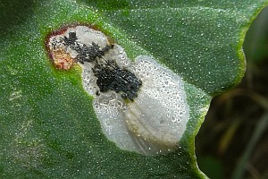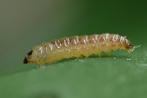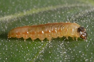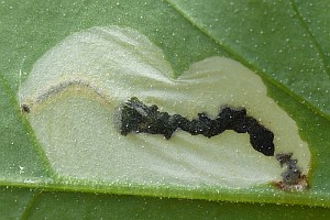 Schütze (1931) schreibt zur Raupe knapp: "In weißen Platzminen, oft mehrere in einem Blatt, an Chenopodium und Atriplex in zwei Generationen. Verwandlung in einem Kokon an der Erde."