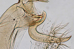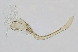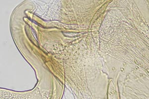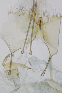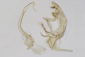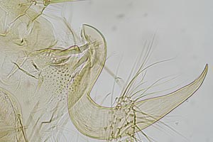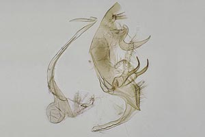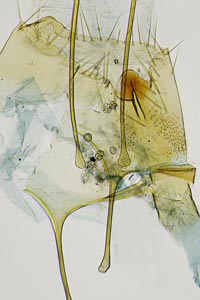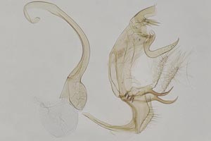 Vergleich Gnathos (links) und Dornenfeld (rechts) von Bryotropha affinis und Bryotropha similis