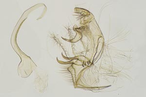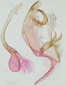 1: Präparat eines nicht abgebildeten ♂, Österreich, Niederösterreich, Oberloiben, am Licht 18. Juni 2010 (leg. Wolfgang Stark, Präparation, det. & Mikrofoto: Peter Buchner)