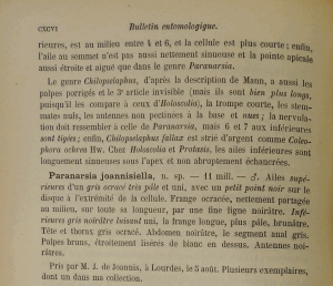 - Erstbeschreibung: Ragonot, E.-L. (1895): Description d'un genre nouveau et d'une espèce inédite de Tinéite (Microlép.). — Bulletin des séances et bulletin bibliographique de la Société entomologique de France 1895: CXCV-CXCVI. Paris. — Digitalisat der Bibliothèque nationale de France: [CXCV].
