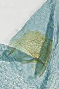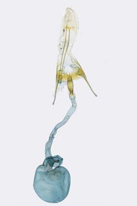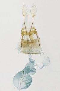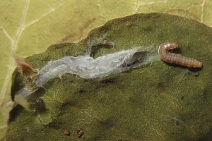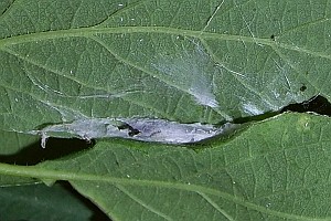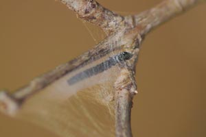 2: Verpuppungsgespinst, Deutschland, Bayern, leg. Raupe 4. Juni 2006 auf Lonicera xylosteum (Studiofoto: Oskar Jungklaus), det. Rudolf BrynerForum