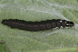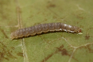 6: Deutschland, Bayern, Isartal bei Icking, 600 m, Raupe am 1. Mai 2012, eingesponnen in Blätter von Roter Heckenkirsche, e.l. 16. Mai 2012 (Foto: Wolfgang Langer), det. Siegfried BraunForum