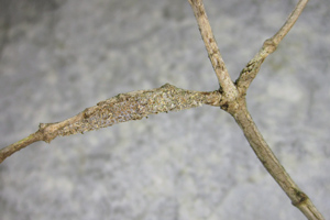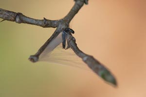 3: Kokon, Deutschland, Bayern, München, Forstenrieder Park, 600 m, Anfang Mai 2011 mit Raupenfutter (Rote Heckenkirsche) eingeschleppt, Falter geschlüpft am 6. Juni 2011 (Foto: Wolfgang Langer), det. Thomas GuggemoosForum