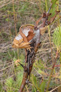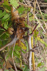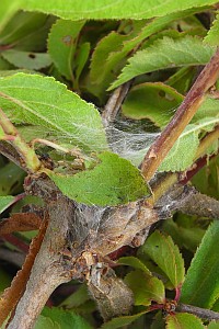 3-5: Befallsbilder an sehr kleinen Weißdornbüschen (Crataegus sp.): Deutschland, Thüringen, Kyffhäuser, Umg. Rottleben, 6. Juli 2014 (Freilandfotos: Heidrun Melzer)