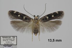 - Erstbeschreibung: Herrich-Schäffer, G. A. W. („1853-1855“) [1847-1855]: Systematische Bearbeitung der Schmetterlinge von Europa, zugleich als Text, Revision und Supplement zu Jakob Hübner's Sammlung europäischer Schmetterlinge. Fünfter Band. Die Schaben und Federmotten: 1-394, Tineides pl. 1-124, Pterophides pl. 1-7, Micropteryges pl. 1. Regensburg.