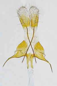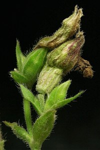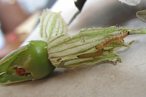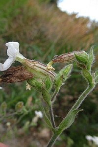 Die Raupen leben bevorzugt an den generativen Pflanzenteilen. Dem Anschein nach fressen sie zunächst innerhalb der Kelche den Fruchtknoten und Teile der Kronblätter. Sind diese Gewebe verzehrt, wird der Kelch an eine weitere Blüte angesponnen (Bild 2), in deren Inneres sich die Raupe im Anschluss verzieht, um dann erneut die darin befindlichen Organe zu fressen. Beim Fressen sind die Raupen im Gegensatz zu Hadena_bicruris nicht auf die unreifen Samen spezialisiert, sondern verzehren die gesamte unreife Kapselfrucht. Dabei scheinen sie besondern das Plazentagewebe zu bevorzugen (Bild 3). (Franziska Bauer)