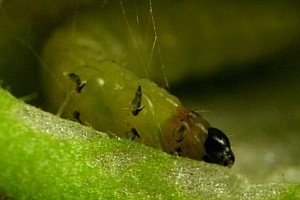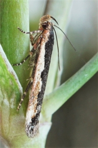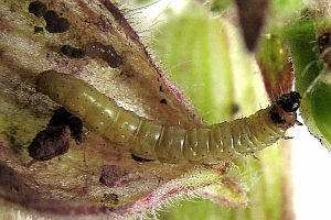 Die Raupen leben anfangs leicht versponnen an und in den Blüten der Weißen Lichtnelke (Silene latifolia ssp. alba), später dann auch in den Samenkapseln. [Friedmar Graf]