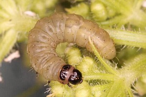Die Raupe dieser Art frisst an den Blüten und unreifen Samenkapseln von Silene latifolia. Unter Zuchtbedingungen konnte beobachtet werdenn, dass sich die Raupen bei Futtermangel auch von Blättern ernährten. Sie saßen dabei an der Blattunterseite und fraßen per Schabefraß. (Franziska Bauer)