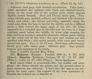 - Erstbeschreibung: Walsingham (1908): Microlepidoptera of Tenerife. — The Proceedings of the Zoological Society of London for the Year 1907: 911-1034 + pl. LI-LIII.