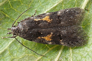 Emmet in Bland et al. (2002: 135-136) schrieb zur Raupe: "The early stages have not been described. According to Svensson (1976), Klimesch reared the species from sweet chestnut (Castanea sativa) in Austria; other continental lepidopterists hsve taken the adult where oak (Quercus spp.) was present and suspected that to be the foodplant. However, Svensson (loc. cit.) states that the moth occurs in Sweden in localities where neither of these trees is present." Endlich wurden die Bedenken gegen eine Nutzung von ausschließlich Fagaceae ernst genommen.