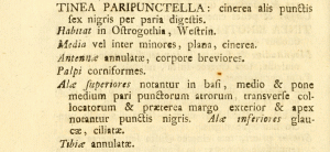 - Tinea paripunctella Thunberg, 1794 [Originalkombination]