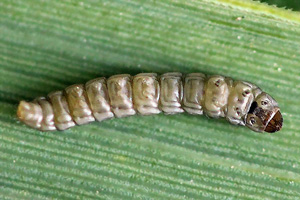1-3: männliche Raupe [3 = ventral]: Russland, Oblast Moskau, Bezirk Orechowo-Sujewo, Dorf Topolinyy, 118 m, in Mine an Gras, leg. 27. Juni 2018, Fotos 29. Juni 2018 (leg., cult., det. & Fotos: Andrey Ponomarev)Forum